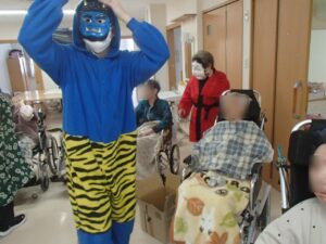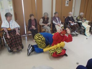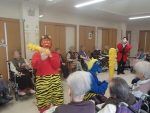 入居者様とご家族様、そして全ての職員の健康を祈念して豆まきを行いました。😁
